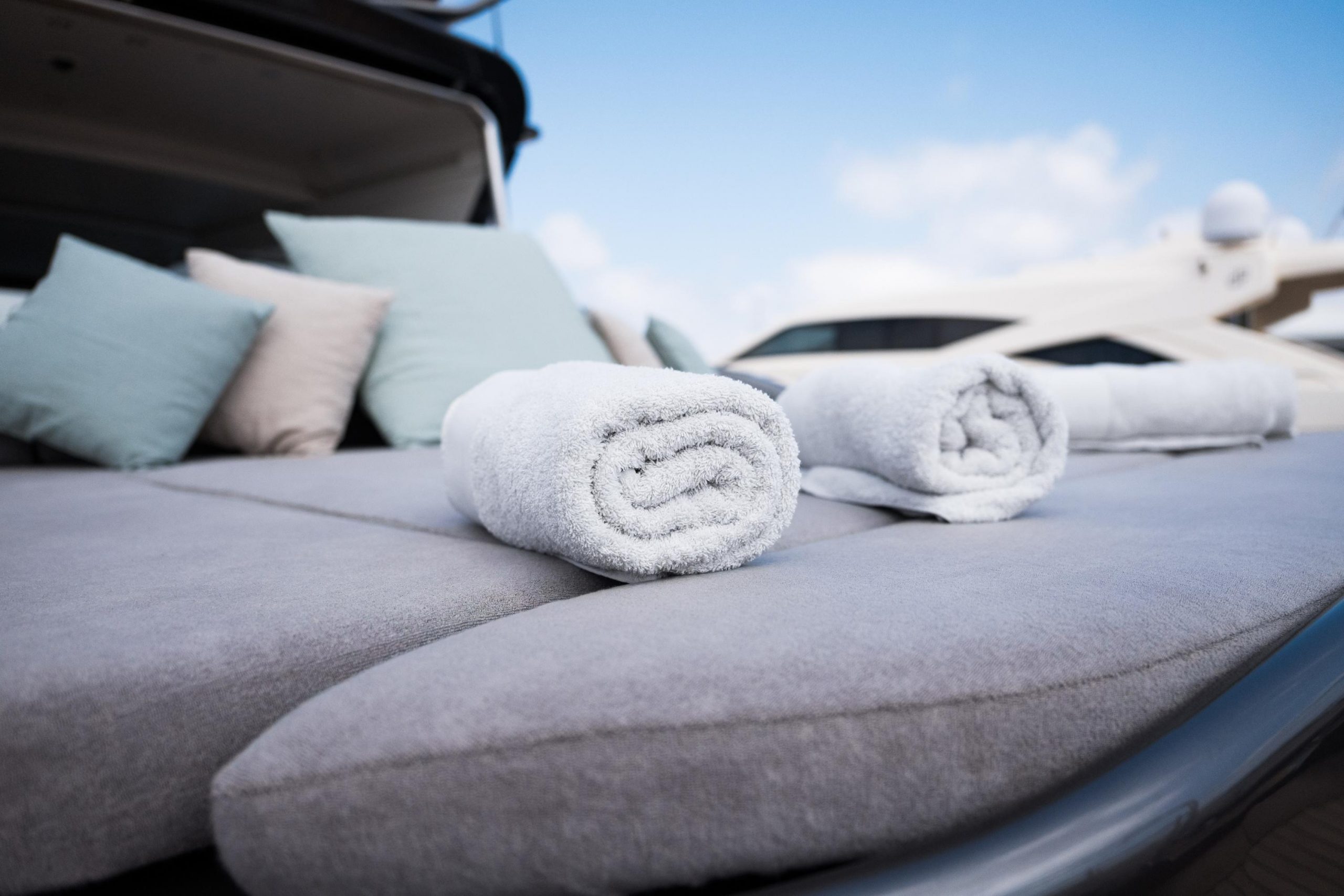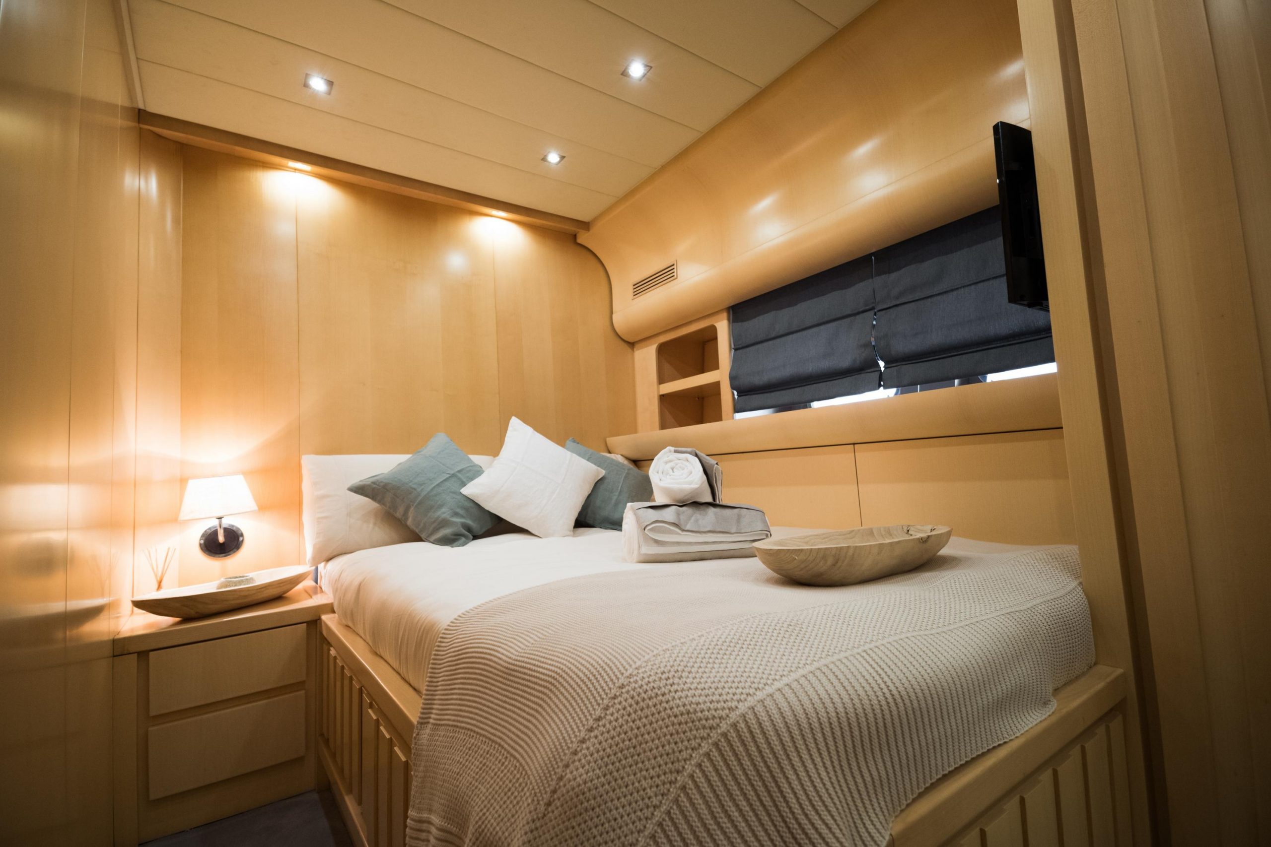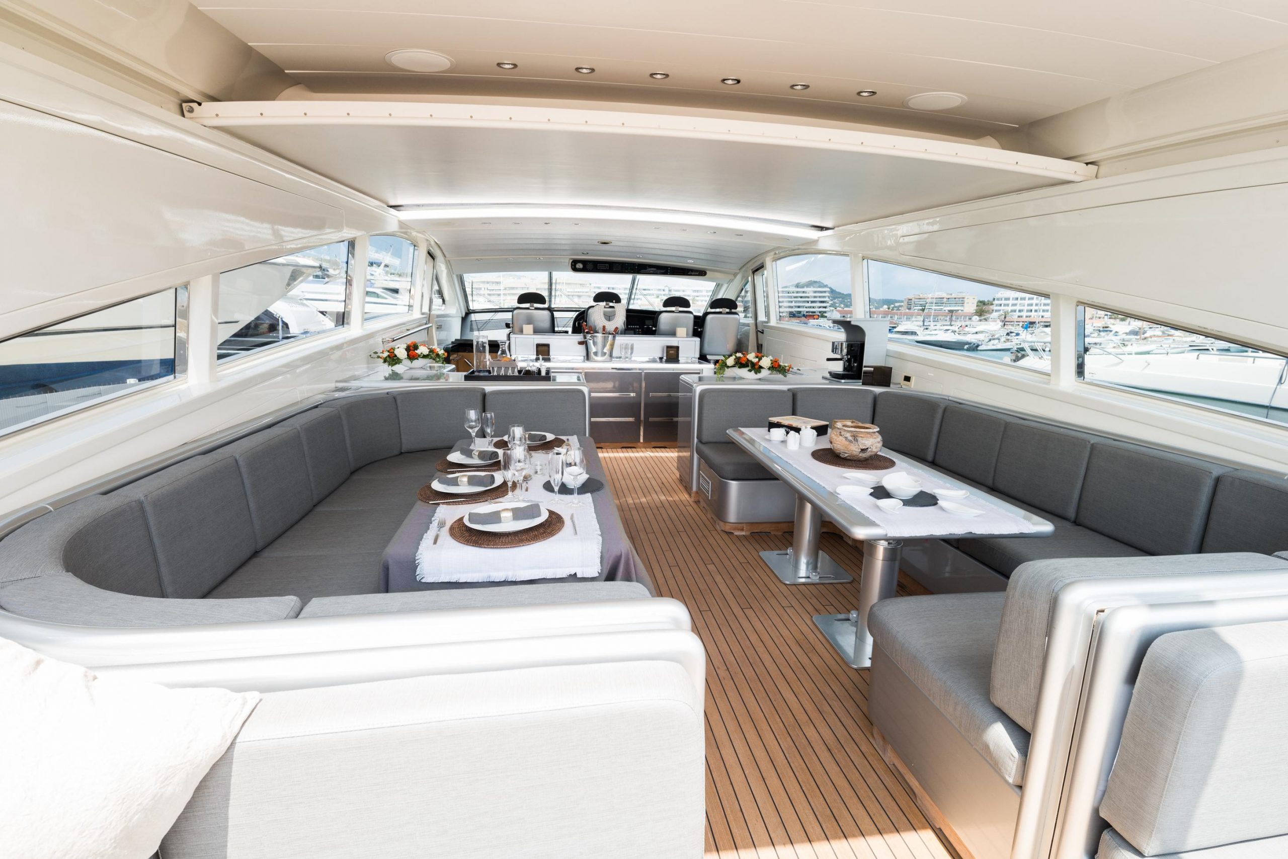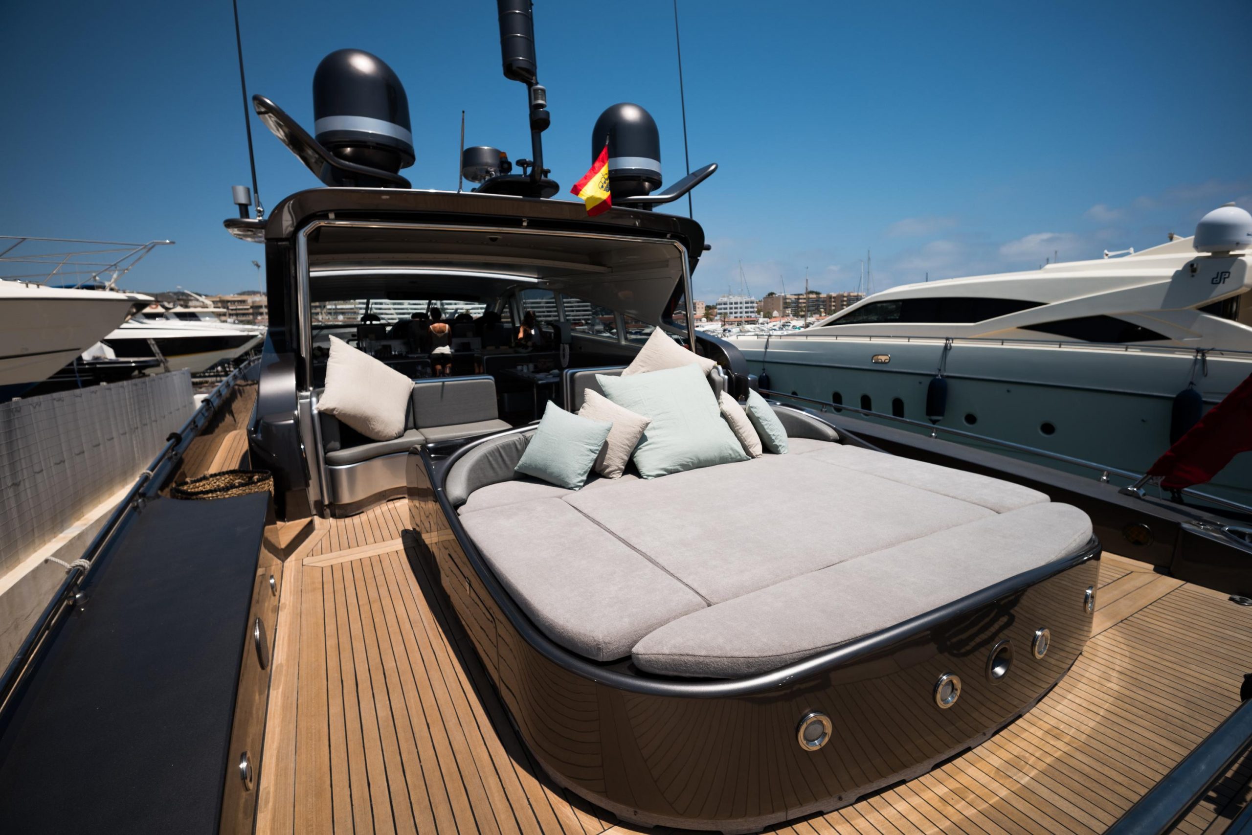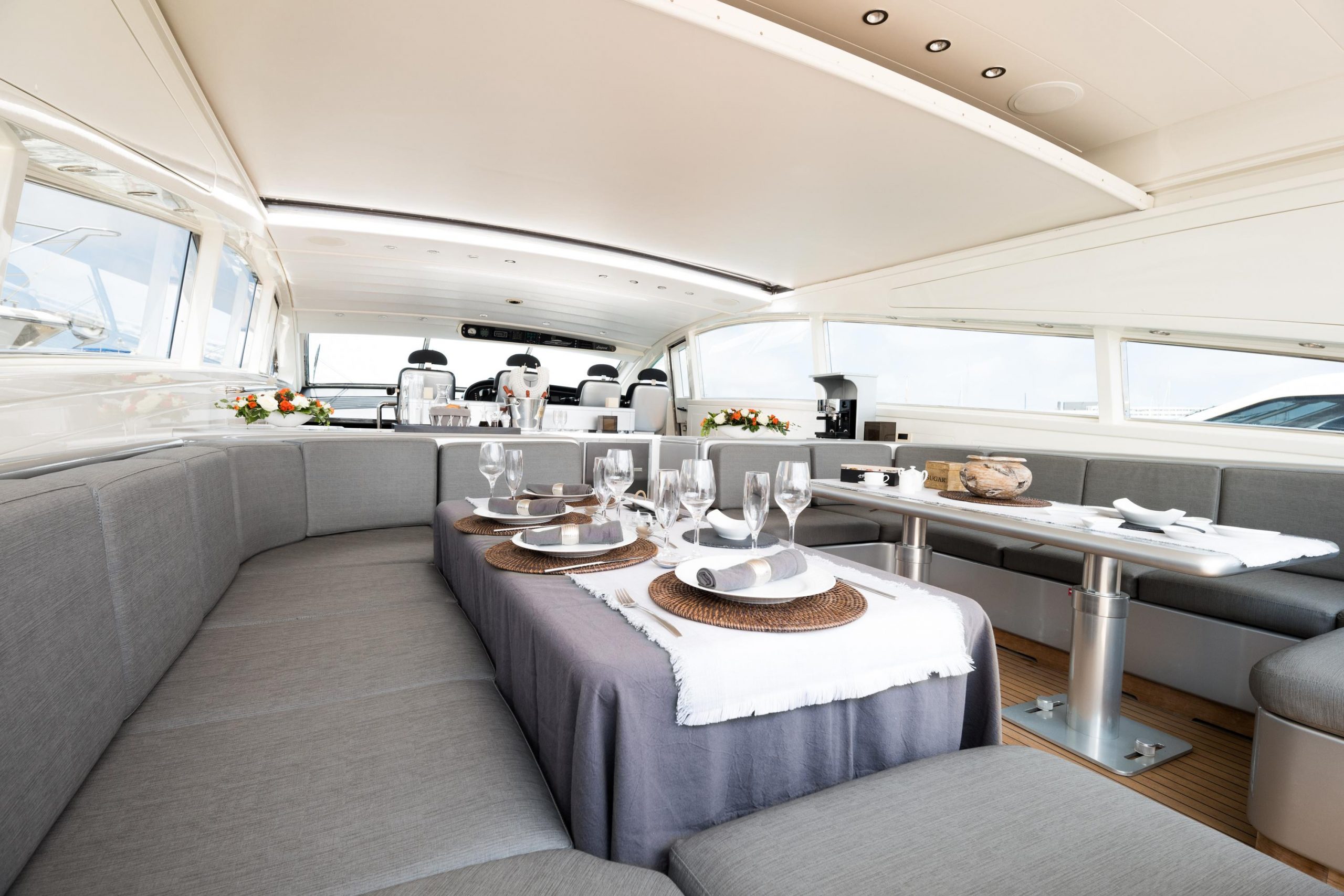 Included: Captain, stewardess, insurance, towels, complimentarydrinks (water, ice, 24 soft drinks, 18 beers, 2 white wine,2 rosé, 2 cava, 1 Champagne), snacks, fruit.