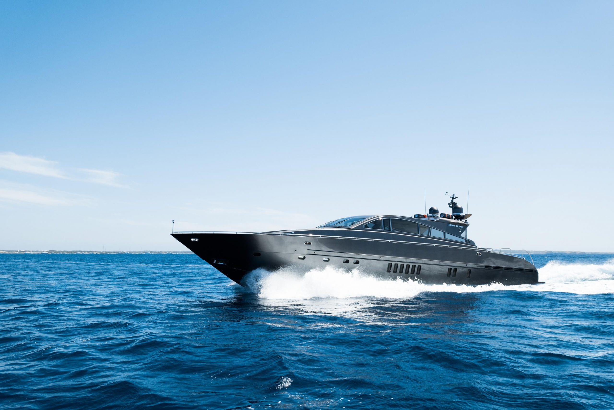 The Leopard 90 is a stealth looking, powerful sports cruiser, built very well and ideal for Mediterranean cruising. She has undergone a full refit including numerous upgrades. This is an exceptional sports cruiser. The pictures are of the actual boat taken within the last couple of months. The boat is lying in Ibiza, Spain and can be sea trialled with 24 hours notice. Viewings highly recommended. As additional information, this boat includes a base port in Ibiza and makes between 80-100 charters in season.