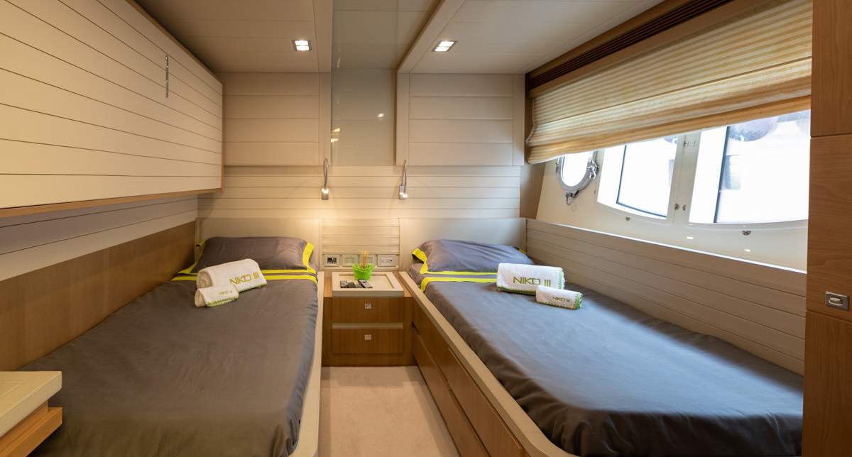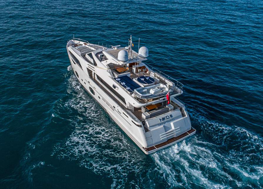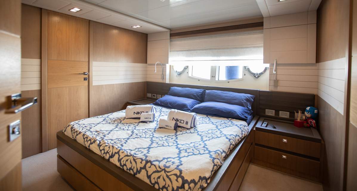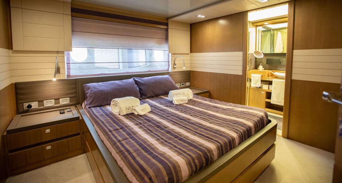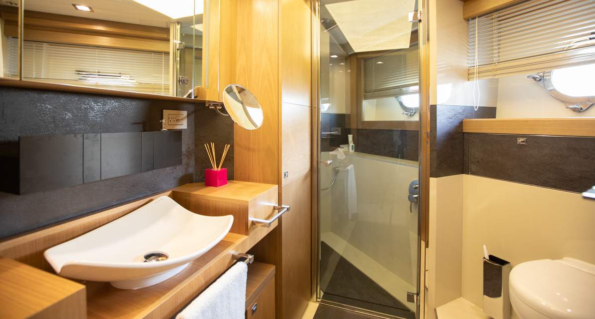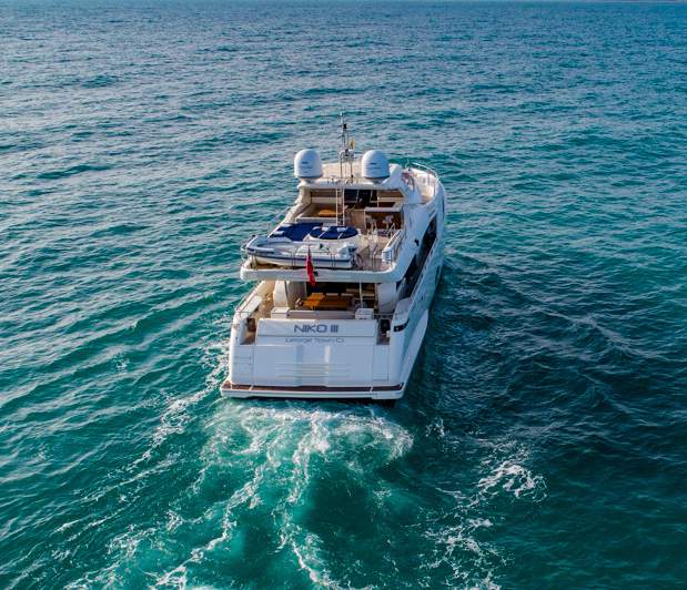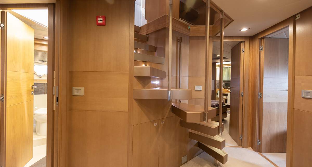 Master cabin on the main deck Hydraulic swimming platform Hydraulic balcony on the main salon Seating area on the bow