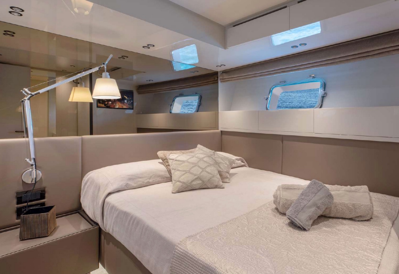 Custom made to perfection, Ozone offers all the incredible amenities you can expect from a San Lorenzo yacht. Built in 2018, she is fit with fin stabiliser, at anchor and underway, allowing a noise free and comfortable navigation. The perfect balance of class and modernity, Ozone is the perfect choice for chartering in France and Italy. Only registered in France.