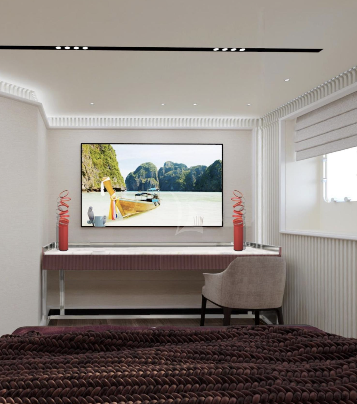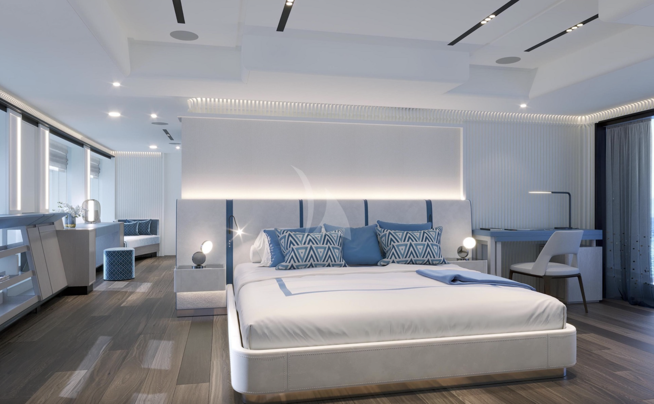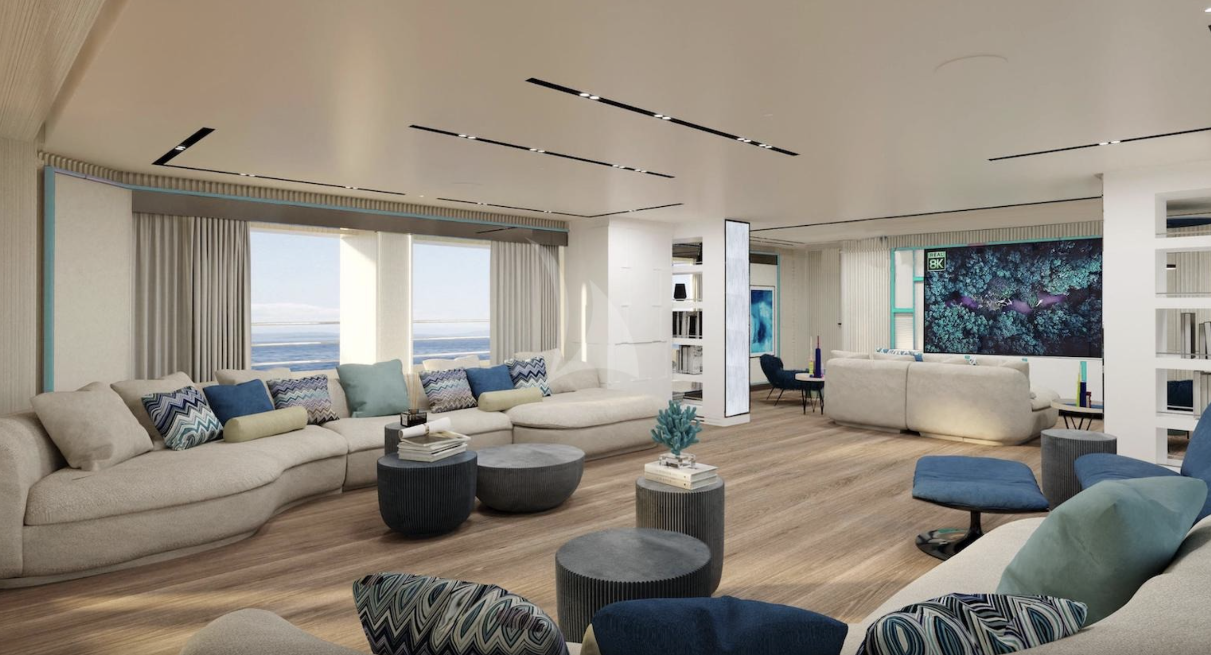Air conditioning, Deck Jacuzzi, Elevator/lift, Gym/exercise equipment, Stabilisers at anchor, Stabilisers underway, WiFi connection on board
