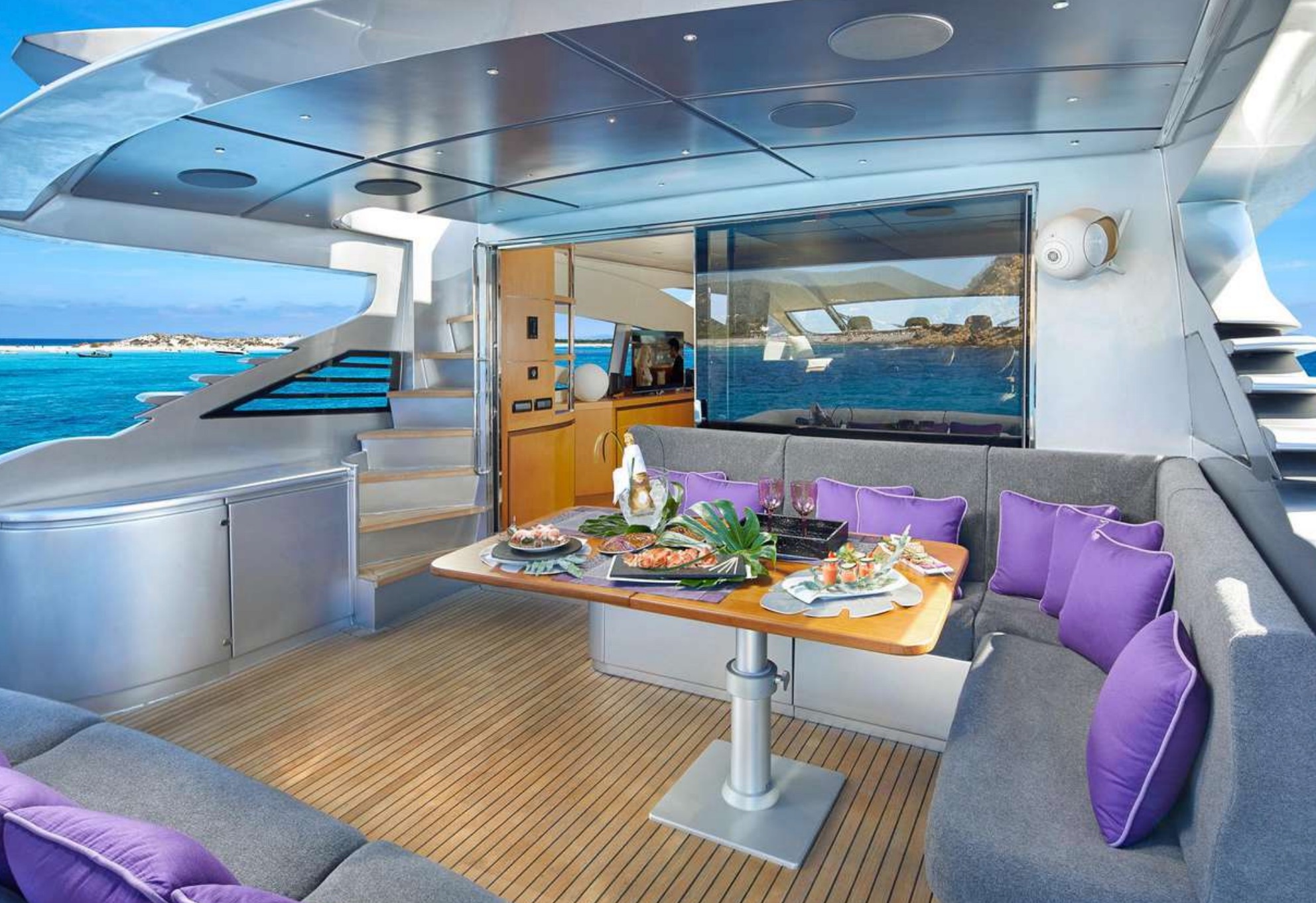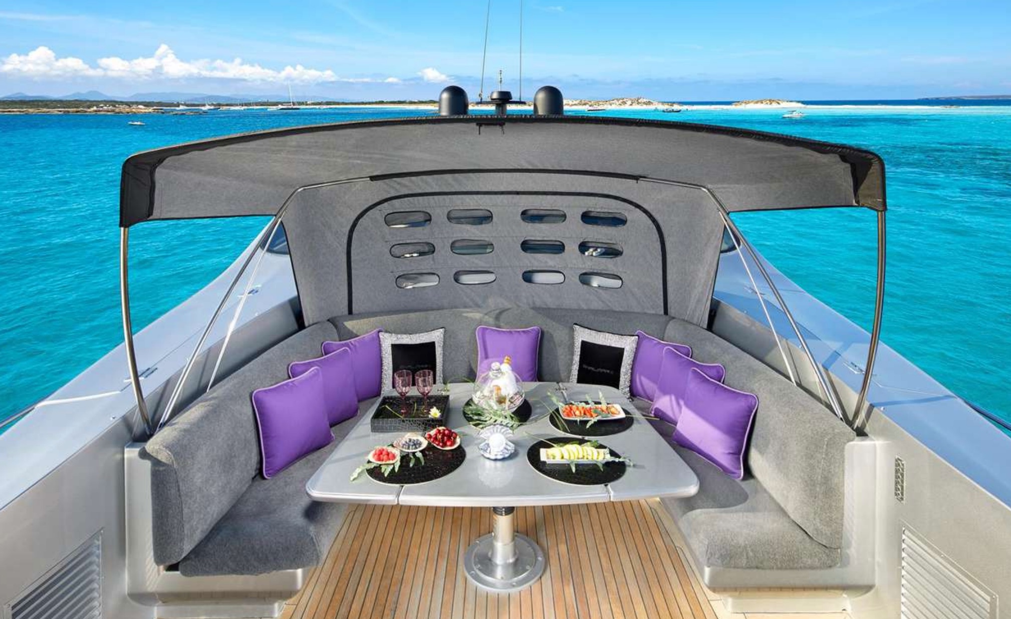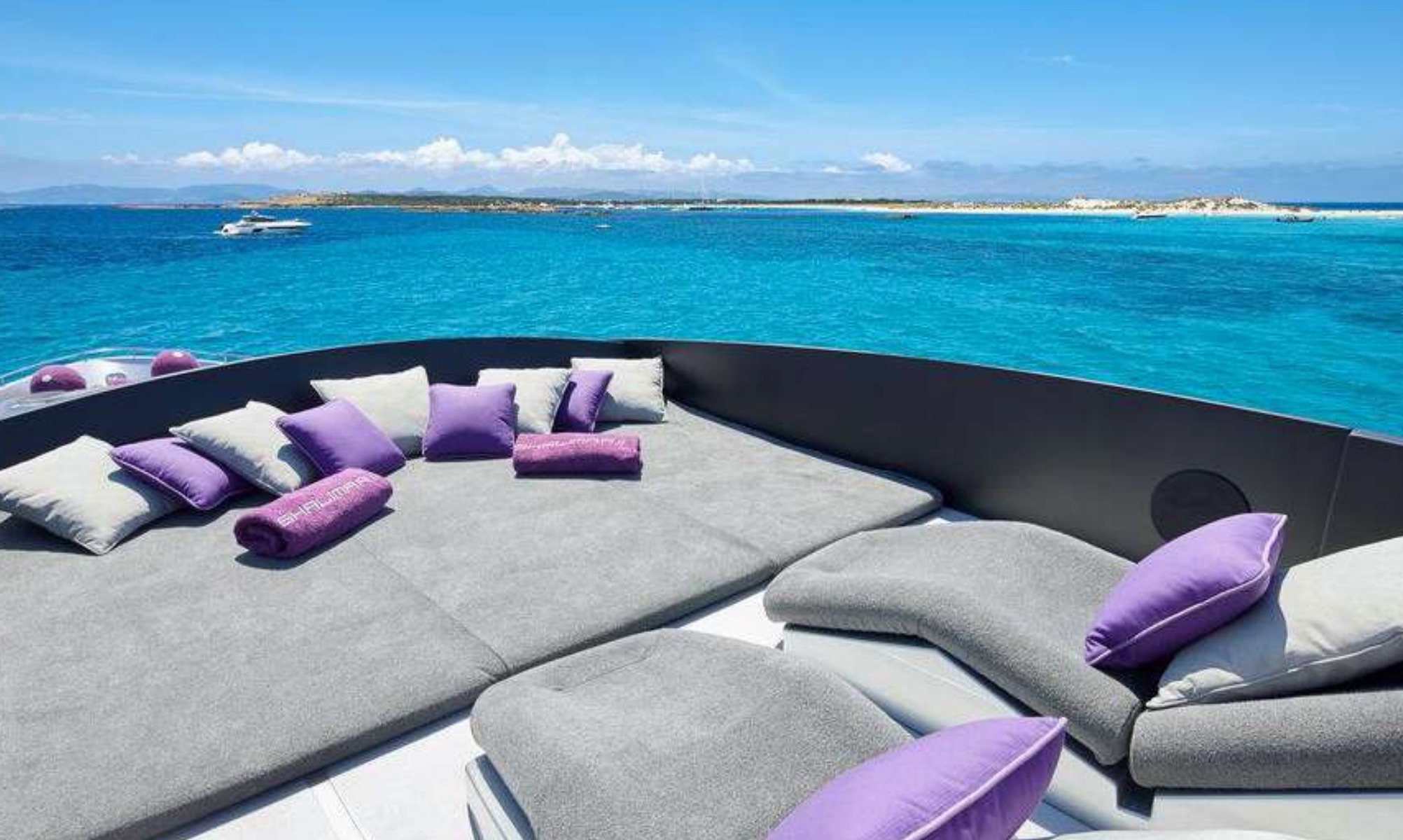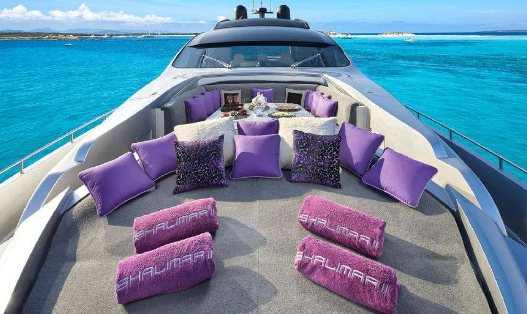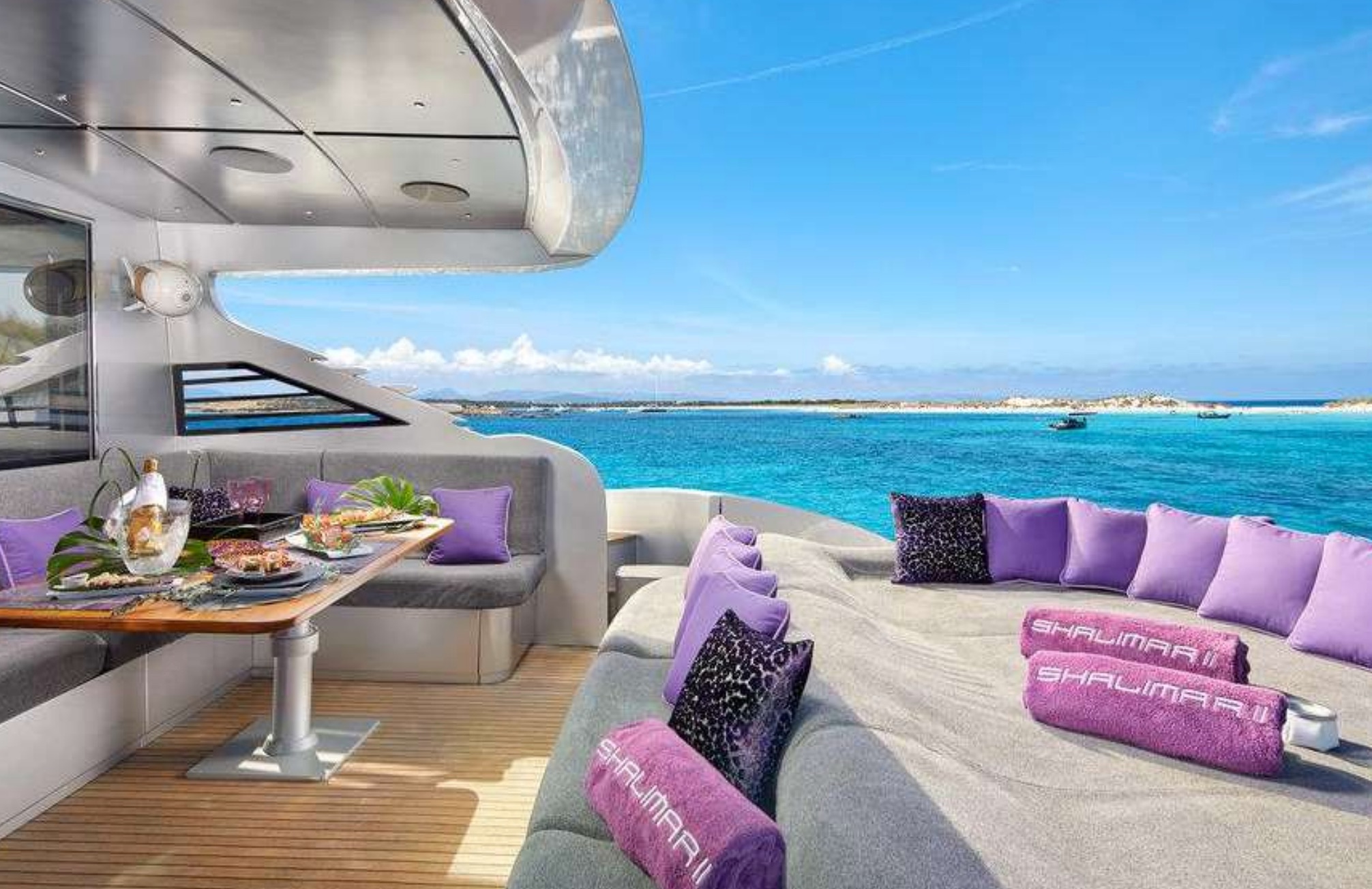 Pershing 90 Shalimar II is a super yacht unlike any other. The fast and furious Shalimar II can fly across the water at a whopping 45 knots and can hop from island to island in the twinkling of an eye. The crew, coming from Shalimar I, knows the islands of Ibiza and Formentera so well that they can show you places that nobody knows and also book tables in restaurants and clubs with impossible waiting lists.